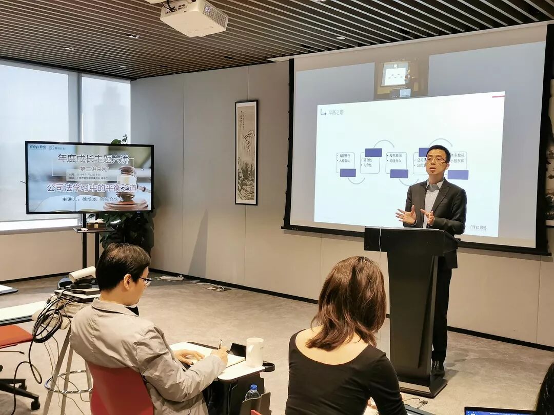 讲座正式拉开序幕,主讲人徐培龙律师结合多年公司法诉讼与非诉实践的感悟,以公司法的平衡之道为切入点,探讨了公司法视角下的失衡与再平衡,深入浅出的引出了公司法的实务难点与重点。徐律师还就青年律师如何学好活用公司法提出非常中肯实用的建议。