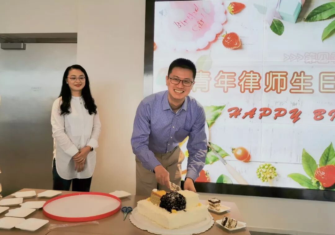 生日会现场济济一堂,伴随着温馨美妙的旋律和暖心的祝福,寿星律师们纷纷许下生日愿望,共同切开生日蛋糕,与在场每一位君悦同仁分享这一刻美好的时光。