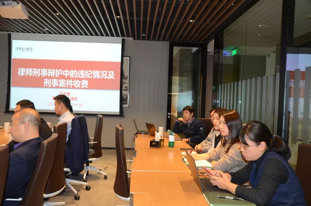 2019年11月26日,君悦所风险控制委员会联合刑事专业委员会,成功举办第一期刑事沙龙,本次沙龙活动的主题是“律师执业中的刑事法律风险”,参加本次沙龙的人员包括君悦所刑委会全体委员及事务所其他律师,由君悦所高级合伙人、刑委会副主任、金融委副主任罗根达律师主持。