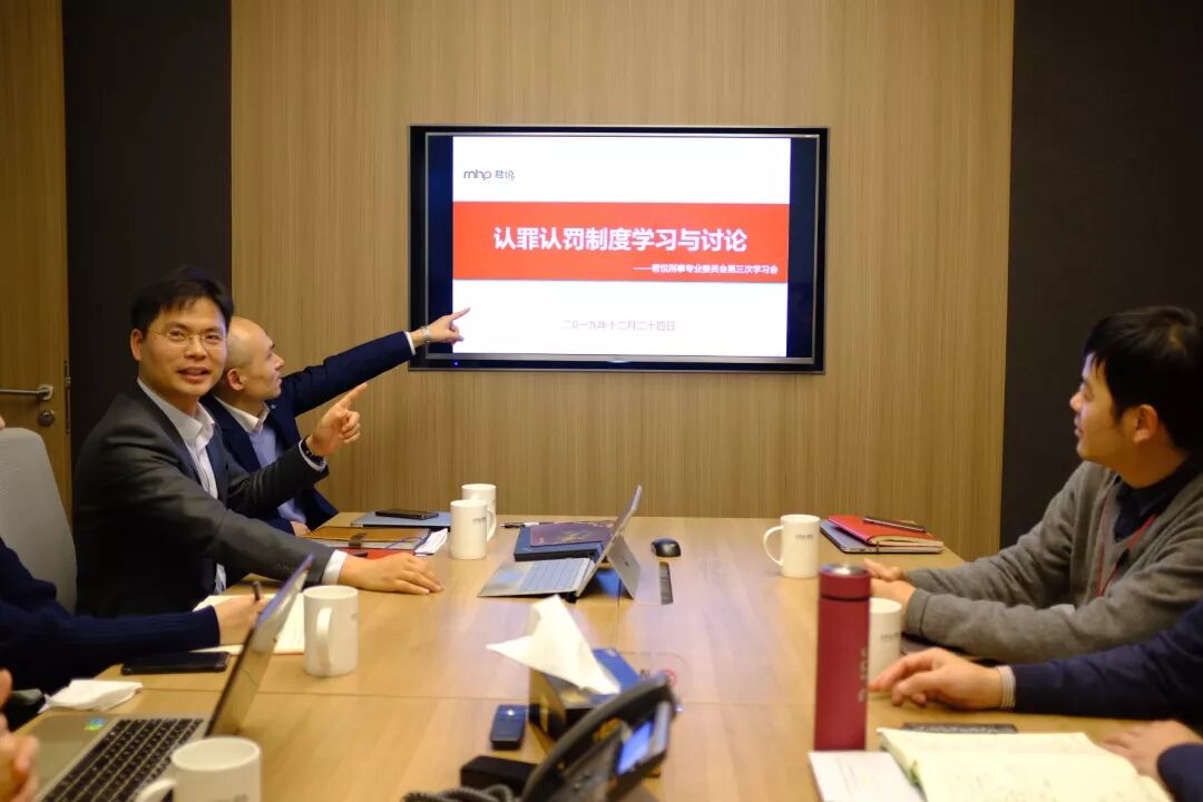 2019年11月26日下午,君悦所刑事专业委员会于深圳厅举办了第三次学习会,本次刑委会内部交流研讨会的主题是“认罪认罚制度的学习与讨论”,参加本次学习会的人员包括君悦所刑委会主任、副主任及各委员,由君悦所高级合伙人、刑委会副主任虞思明律师主持,由君悦所高级合伙人、刑委会副主任罗根达律师及合伙人陈珀律师主讲。